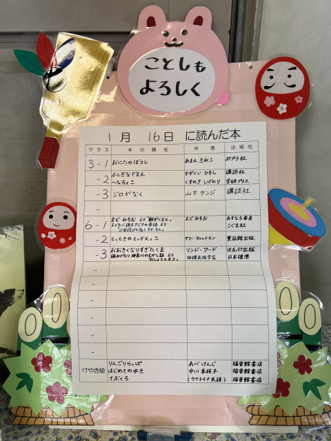 年も明けて、最初の読み聞かせは 3年生、6年生、けやき級でありました。