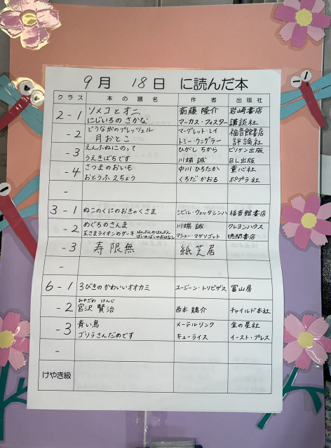 本日は2年生、3年生、6年生の読み聞かせがありました。