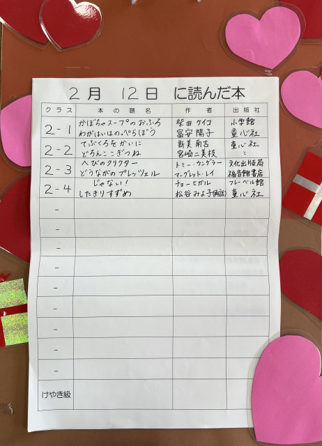 ふと気づけば、2月も半ば近く。今年度の読み聞かせも残り回数がわずかとなって来て、ちょっと寂しい気持ちになりますね。