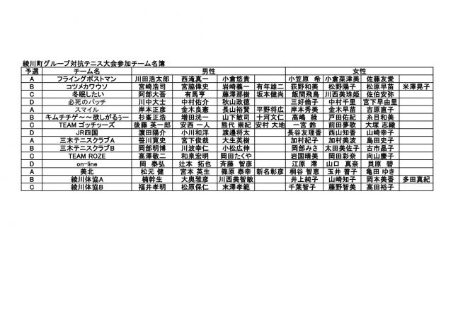 参加チームは15チーム、予選は4ブロックに分かれて予選行いました。