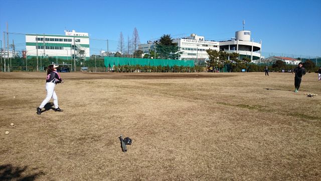 とてもボール転がせる状態じゃないので、基本外野を使用しての練習です。