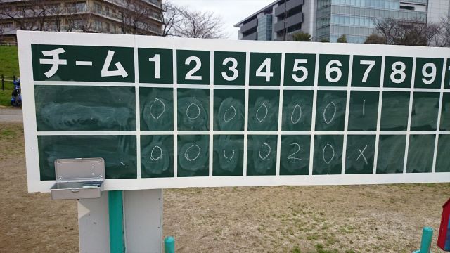 ※撮影前にチーム名消しちゃいましたが、先攻キャッツです。