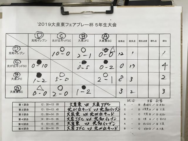 12/22(日)大泉東U11フェアプレー杯結果です。
