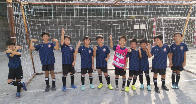 豊南戦、試合開始から両者譲らない展開でしたが、前半終了間際に中央でハルキからのスルーパスに反応したシュウトが落ち着いて先制ゴール!後半も接戦になりましたが、右サイド相手のスローインをシュウトのプレスからボールを奪い、アキトにつながったところで前線にスルーパス。そこに走り込んだカケルがシュートを決め追加点。守備も全員が頑張り、失点を許さず公式戦初勝利をつかみました!