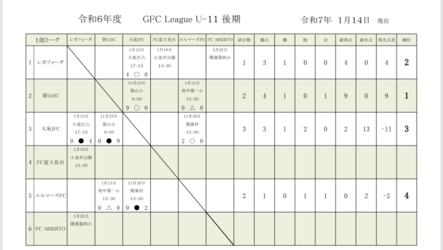1/12(日)U11GFCリーグ結果