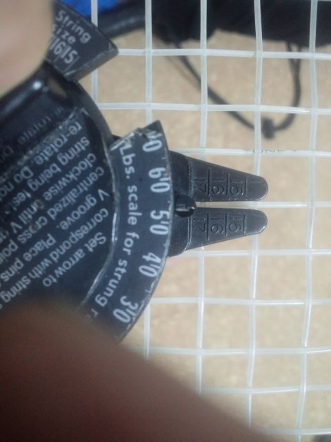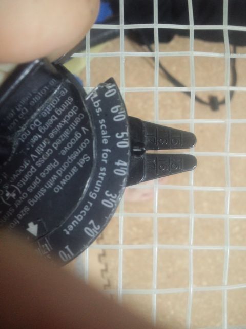 いつも通りテンションメーターで測定してみます。 今回は前回と同じ50lbsで張るように頼まれました。