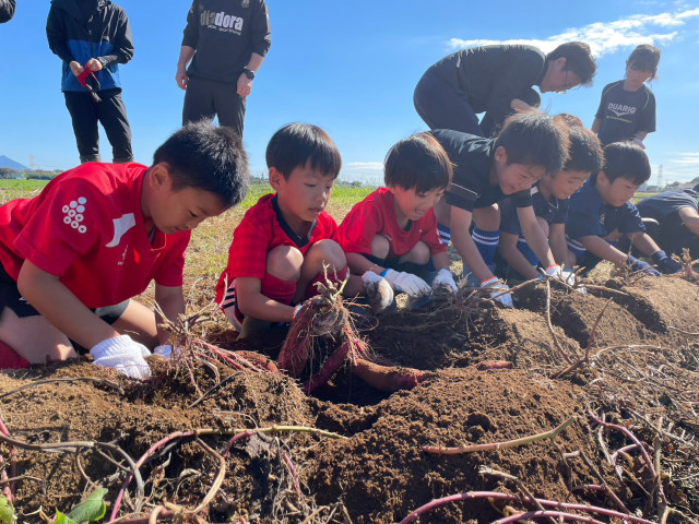 晴れ渡る青空のもと、体験会とイモ掘りツアー(低学年)を行いました!