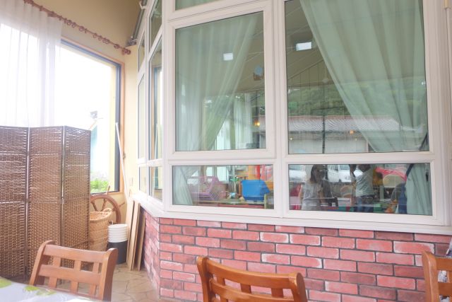 ママ達は席から窓の中の様子を見ながらおしゃべり。