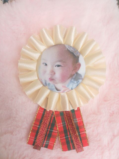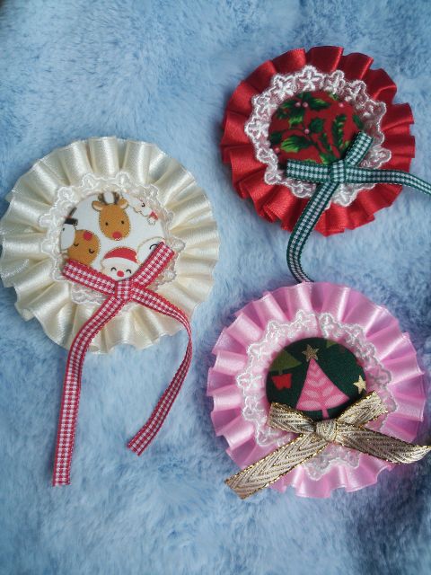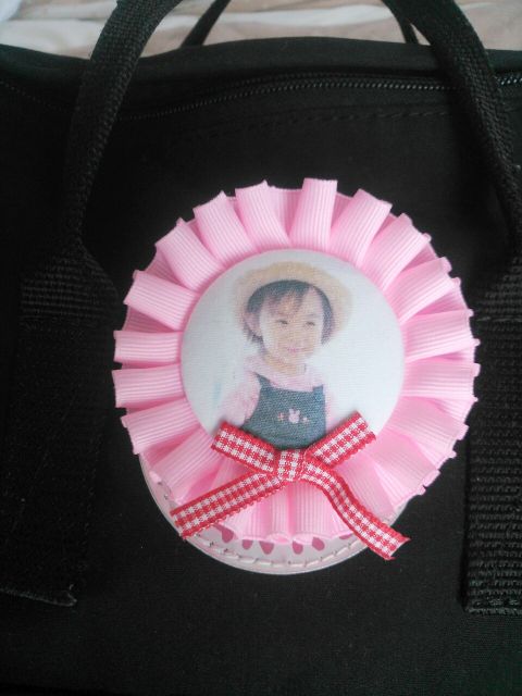 今回そのロゼットをお子さんがクリスマス会などでちょっと身に着けて貰えたら可愛いかな(^^♪と思い、クリスマス柄で簡単に作って頂こう!と思ったのですが、思いのほか私がバッグに付けていた写真のロゼットに興味を持って下さる方が沢山いらしたので、<急遽お写真ロゼットもお作り頂ける事になりました{emoji index="146"}