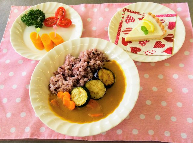 講師のしだりえさんのレッスンでも出た事ない初登場メニューを、毎回、お届けしておりますが、今回は、お子様にも、大人気のカレー💕と、どんな味?のにんじんソーセージ🎵