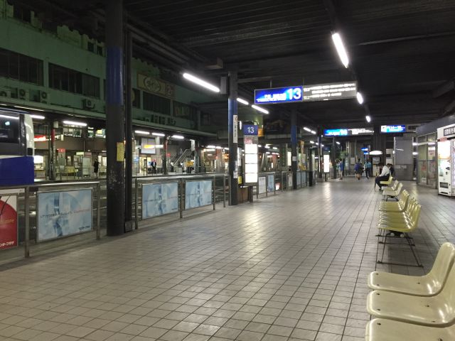 熊本交通センターのバスターミナル移転前夜と仮ターミナルの移転初日の写真です。