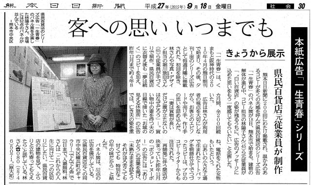 【記事掲載】客への思い いつまでも(熊本日日新聞H27.9.18付)