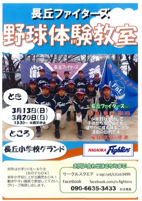 ◎長丘ファイターズ主催の野球体験教室を開催いたします。{emoji index="203"}