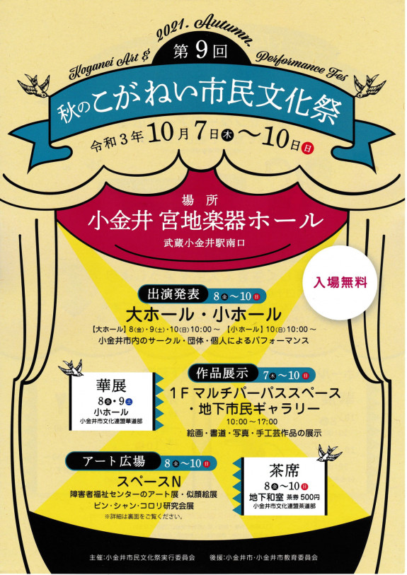 今年もこがねい市民文化祭に参加します。 2019年のチラシができました! お近くの方はぜひお越しください(*´▽`*)/