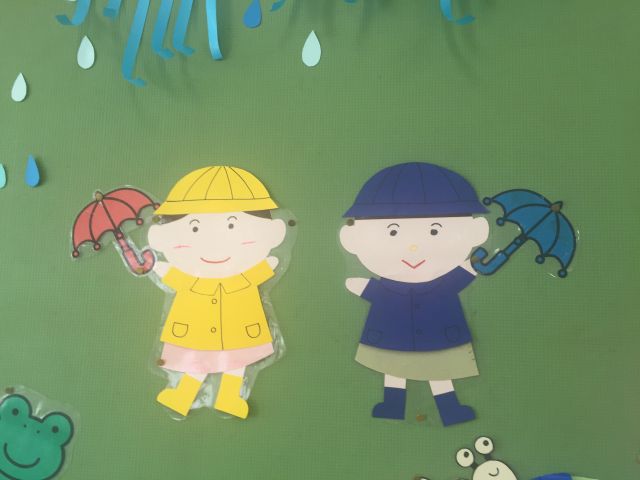 男の子と女の子、梅雨バージョン。お揃いのカッパが可愛らしい{emoji index="136"}