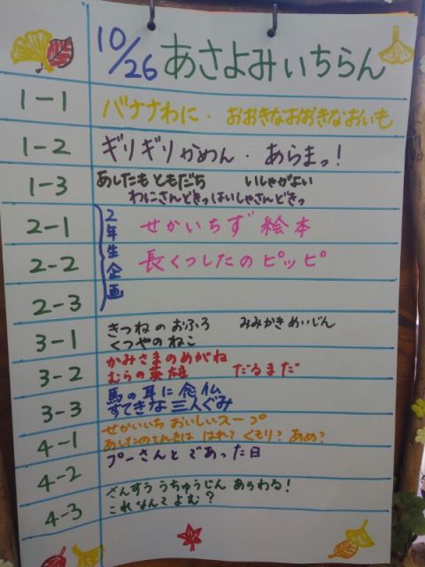 10/26の朝読み一覧です。朝読みにご協力いただいた方、ありがとうございました。