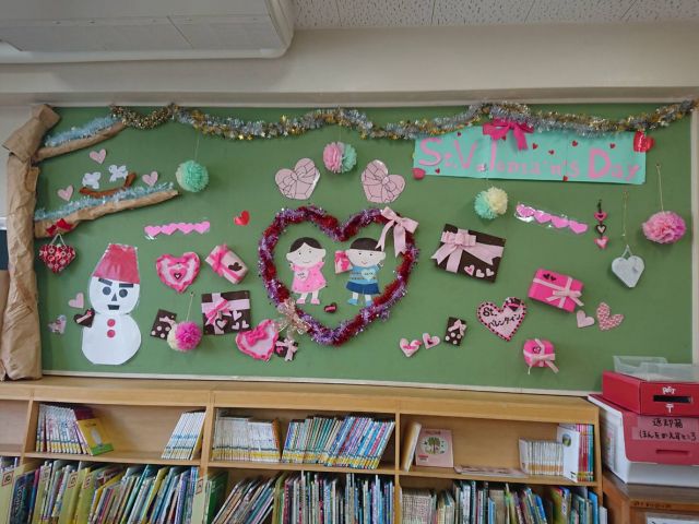 1/17(木)に図書室の装飾を「節分&バレンタイン」に変更しました。