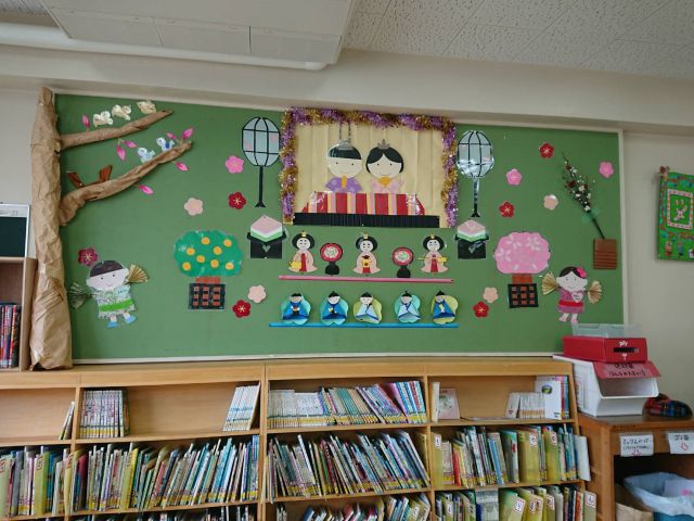 節分&バレンタイン仕様だった図書室を「ひなまつり」に変更しました。