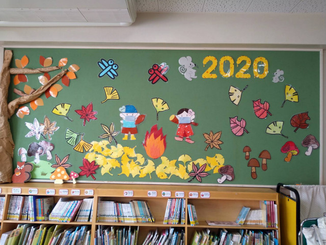 苅宿小学校の図書室も、今日から秋の飾り付けになりました。