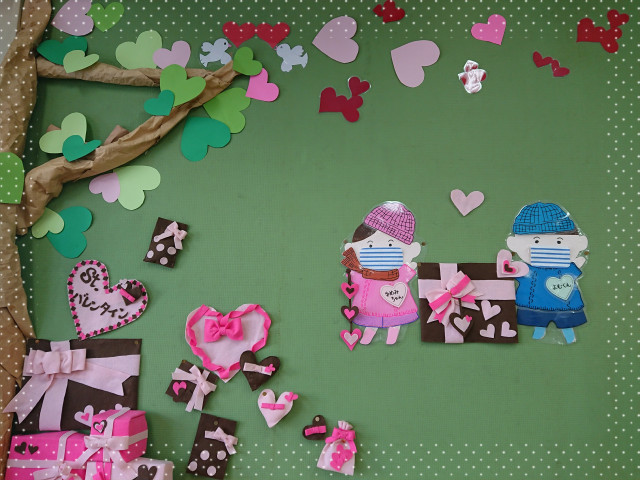 図書室の飾り付けも「お正月」から「バレンタイン」に。