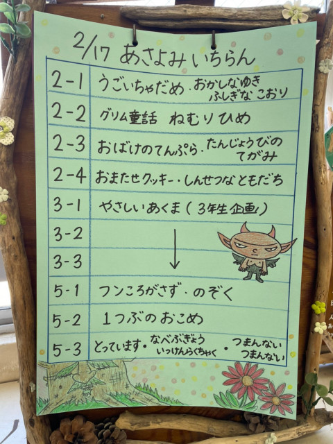 今回は人数の関係もあり、1年生は朝読みができませんでした。次回3月3日が今年度最後の読み聞かせになります。