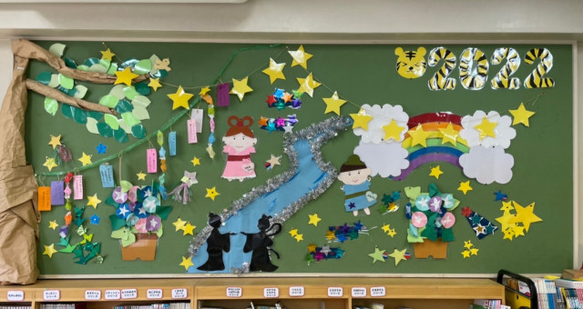 図書室の黒板は、このたび七夕模様に生まれ変わりました。