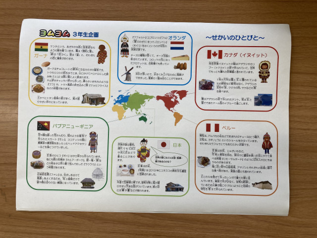 3年生メンバーも、このように代表的な6カ国の伝統と文化をまとめたパネルを作成。