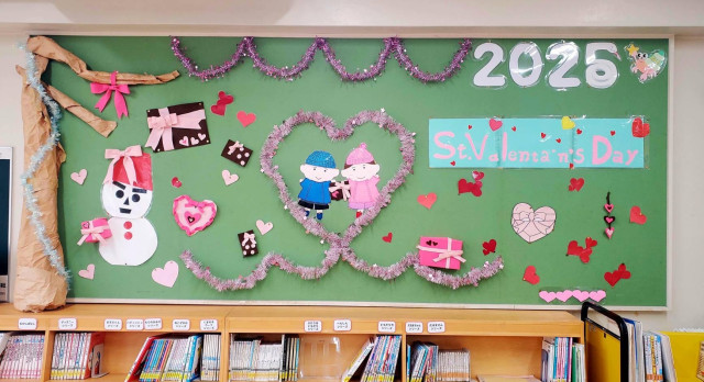 今月の黒板装飾「バレンタイン」です。