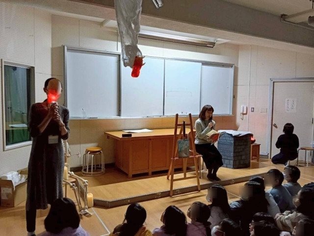 特にペタペタという足音は読み手の声に被せるように小さな音で流したのですが、耳聡い子どもたちは「え? なんの音?!」と怯えていたのが印象的だったと効果音担当。細かい演出も盛りだくさんにしたので、このお話が一番怖かったのではないかと思います。