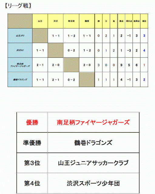 ・優勝 FJ ・2位 鶴巻 ・3位 山王 ・4位 渋沢