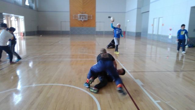 ④筋トレ;アリゲ-タ、首、馬飛び股くぐり相撲押し、四つん這いで踏ん張り、腹筋ボール、ボール取り1対1(トーナメント)、リフト(45min)
