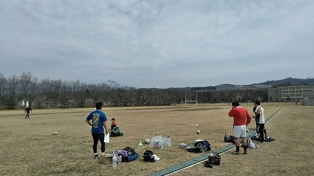 今回から、会津大学フィ-ルドでの練習となりました。グランドから見る磐梯山の雪もだいぶ融けてきました。