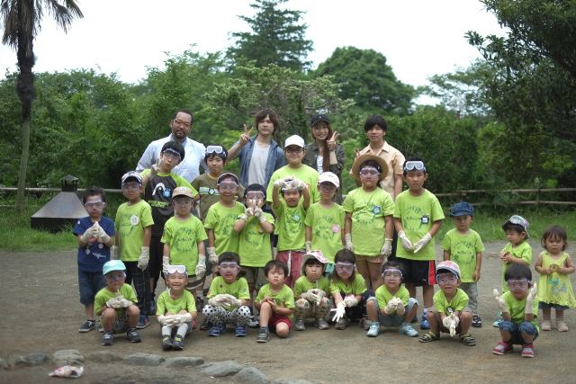 目を保護するためのゴーグルを気に入ったみんな、付けたままで記念撮影です。