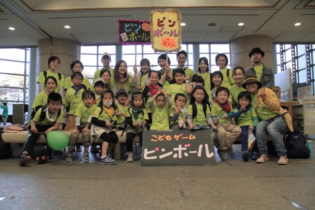10月16日の工作教室で作製した子供達作製のピンボールを使って、100円でビー玉5個で5回チャレンジできるゲームを行い、景品にはアメすくいを用意しました。