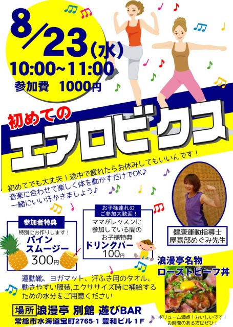 初めてのエアロビクスは有酸素運動と筋トレ、ストレッチを行いました。