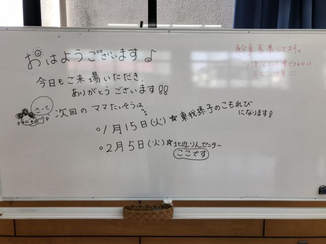 来月は1月15日東我孫子駅近くこもれび近隣センターです。