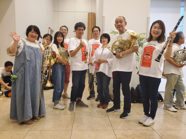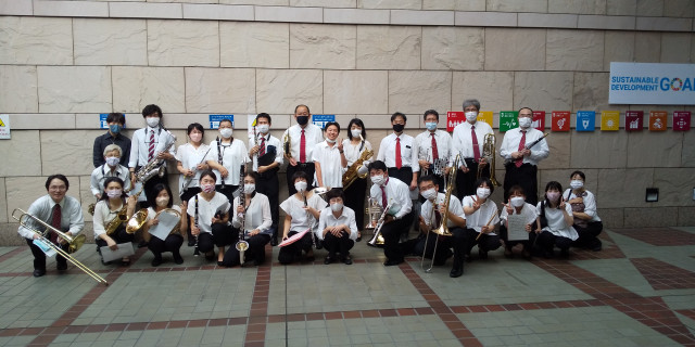 昨年に引続き、大崎駅前郵便局局長である団長のお膝元・大崎ニューシティでの夏祭りの依頼演奏♪ 今年は観客参加型の企画もあり、お子さまからご年配の方々も指揮棒を振ったり、踊ったりと大いに盛り上がったステージとなりました! めちゃくちゃ暑い一日でしたが、楽しかったですね d(^▽^)b