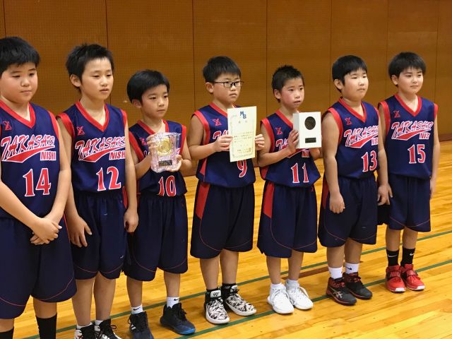 4年の部では4年生7人で一回戦は安中ミニバスさん、2回戦は佐野ミニバスさん、決勝は粕川ミニバスさんと対戦。みんなの力を合わせて優勝することができました。決勝戦は1点差ゲームでハラハラドキドキでした。みんないい笑顔でとてもかっこよかったです。