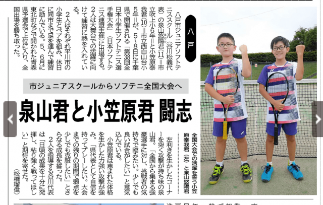 第38回全日本小学生ソフトテニス選手権大会に当クラブから2名参加予定ですが、2021年8月3日のデーリー東北新聞に記事が掲載されました。