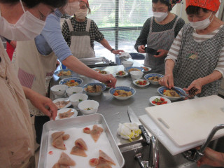 持ち物:エプロン・マスク・三角巾・食器を拭く布巾・水筒・タオル・上靴・(あれば)参加記録表など