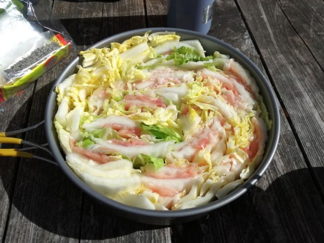白菜と豚肉がミルフィーユ状にぎっしり詰められています。