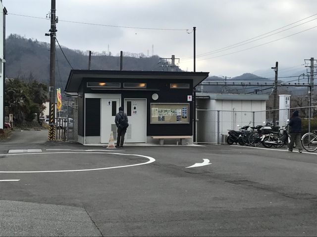 朝7時40分に鳥沢駅に到着。事前情報ではトイレがないということでしたが、駅舎は綺麗になり、トイレも駅を出るとしっかりしたものができていた。