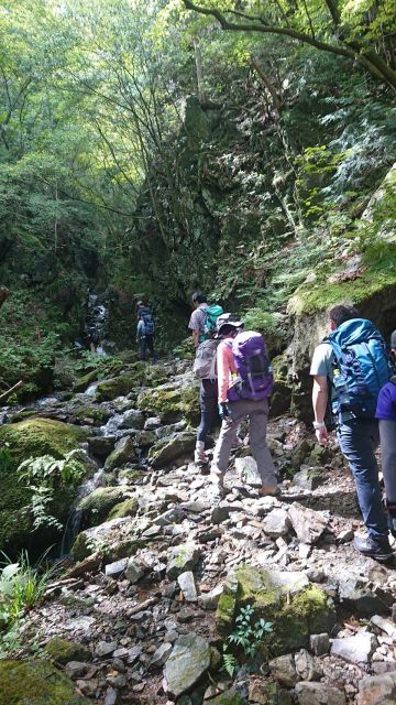 沢の涼とせせらぎを堪能しながら、岩場・鎖場を抜けふたたび林道へ。