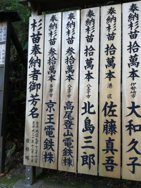 杉並木には、寄付をした人の名前が張り出されており、北島三郎の名前を発見。高尾山に並々ならぬ思い入れがあるようです。
