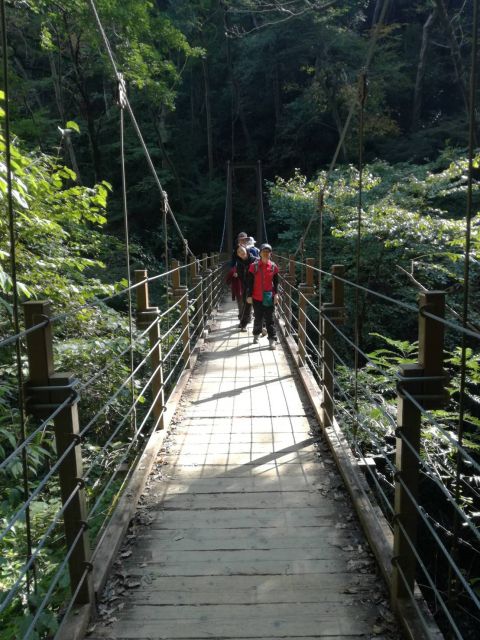 高尾山には、観光客も多い1号路を避け、4号路で向かいます。4号路に入ると、森の中の気持ちのいい道になり吊橋を少しドキドキしながらわたり山頂を目指します。