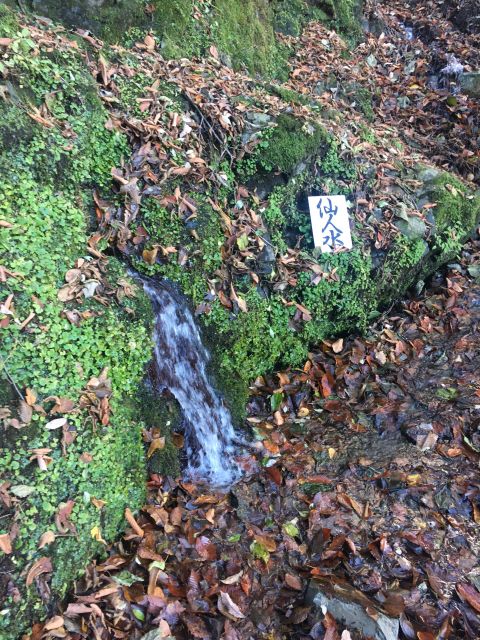 現れたのは仙人水。前日の雨のせいか、勢いよく流れる清涼感ありありの水に、マイナスイオンを感じ、一同癒される(*´ω`*)