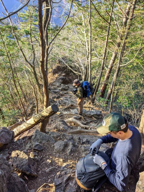 と内心思ったのもつかの間で、兎に角のぼり同様にくだりもなかなか険しく急こう配の下りや岩場の下り、段差が高い階段状の下りとこれでもかというバリエーションで険しい下りが次々ときて、はじめて「くだり、結構キツイ・・・」と思いました
