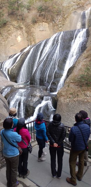 残すは袋田の滝、氷瀑見学です。登山コースには、奥久慈自然休養林を縦断し袋田の滝に通ずるコースがあるようですが、今回は車で移動しました。滝は凍っておらず残念ながら氷瀑は見れませんでした。水量も少なめでしたが、大きな滝を目にして今回の山行の目的は全て達成です。