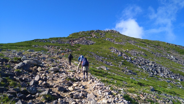 山登りの醍醐味を味わったあとはそれぞれの朝食を済ませ、こんどは常念岳の山頂を目指します。