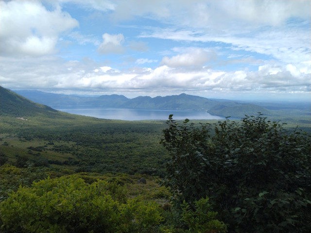 装備を整え登山スタート。樹林帯はこの時期の北海道には珍しく、蒸した暑さで汗が吹き出ますが、山頂近くになると風が抜けて心地よい感じです。そして支笏湖の眺めが素晴らしい。